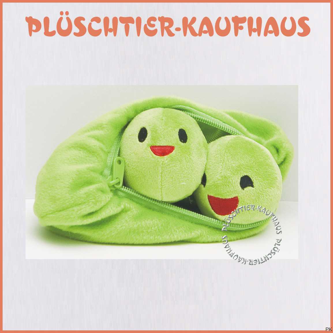 Drollige Plüsch Erbsen mit fröhlichem Gesicht und robustem Metall-Reißverschluss.