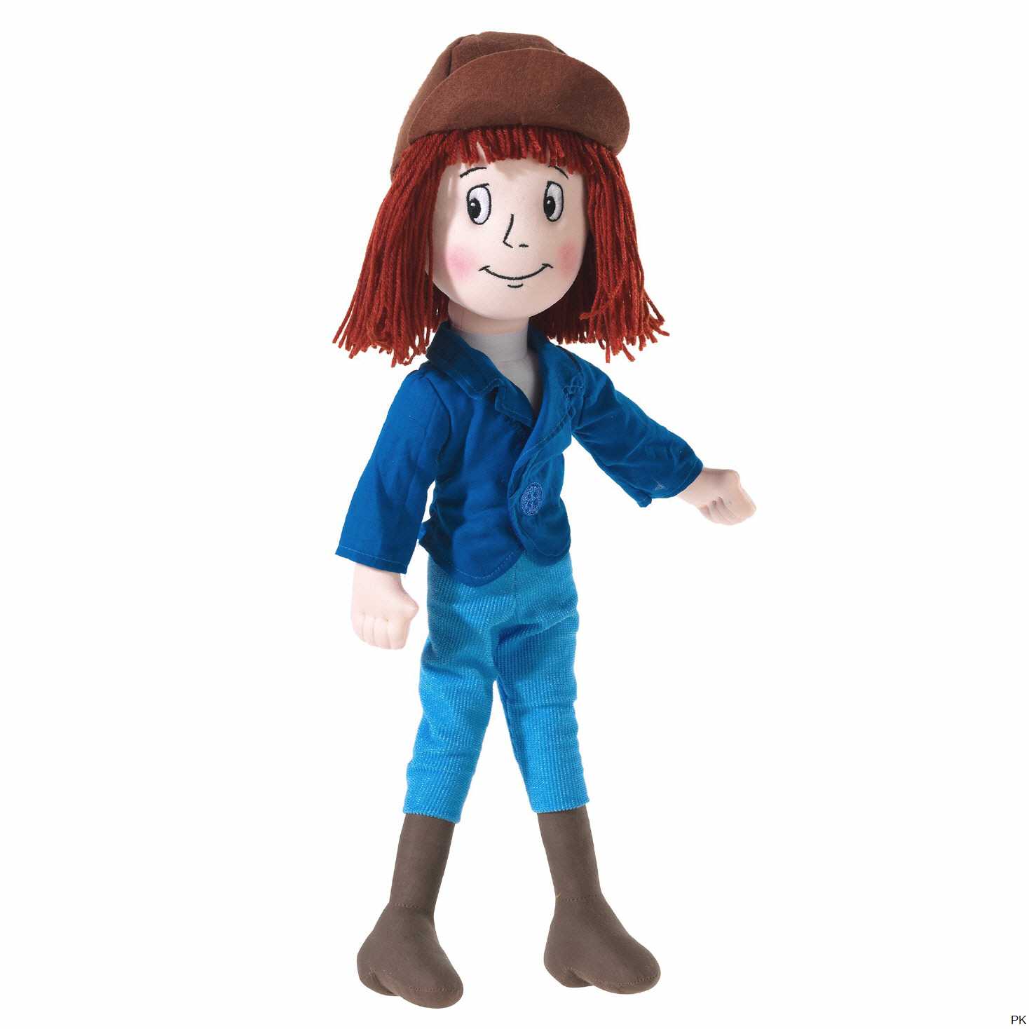 Unsere Plüschpuppe Tina hat ein gesticktes Gesicht und hat sich für den Ausritt mit ihrer besten Freundin Bibi schick gekleidet. Mit rotem Wollhaar unter der Reiterkappe.