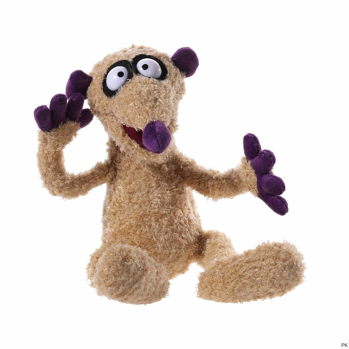 Mit seinen großen Augen und den violett abgesetzten Körperpartien schaut die Plüschfigur "Jan" süß und lustig aus.