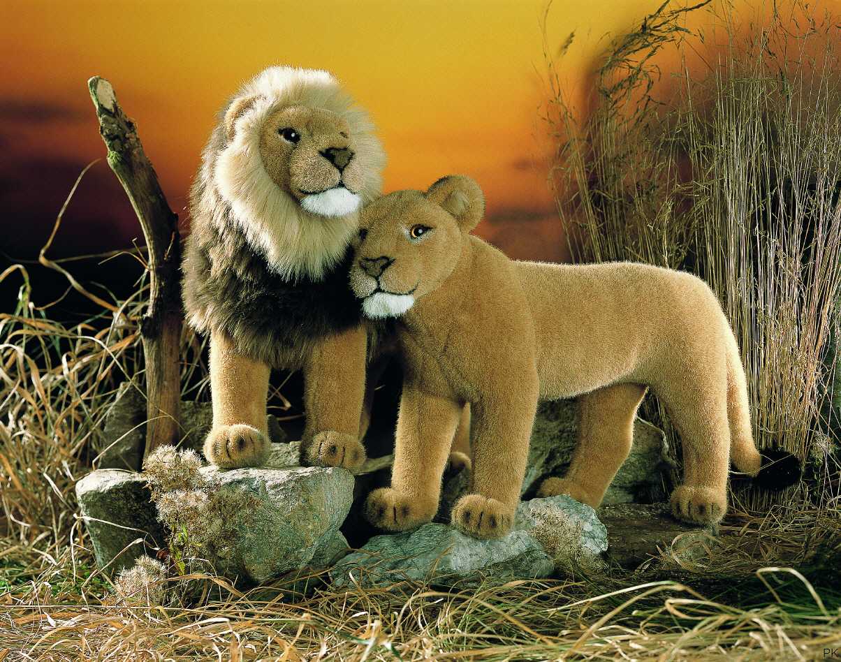 Bild vergrößern, Plüschtier Löwe und Plüschtier Löwin >>