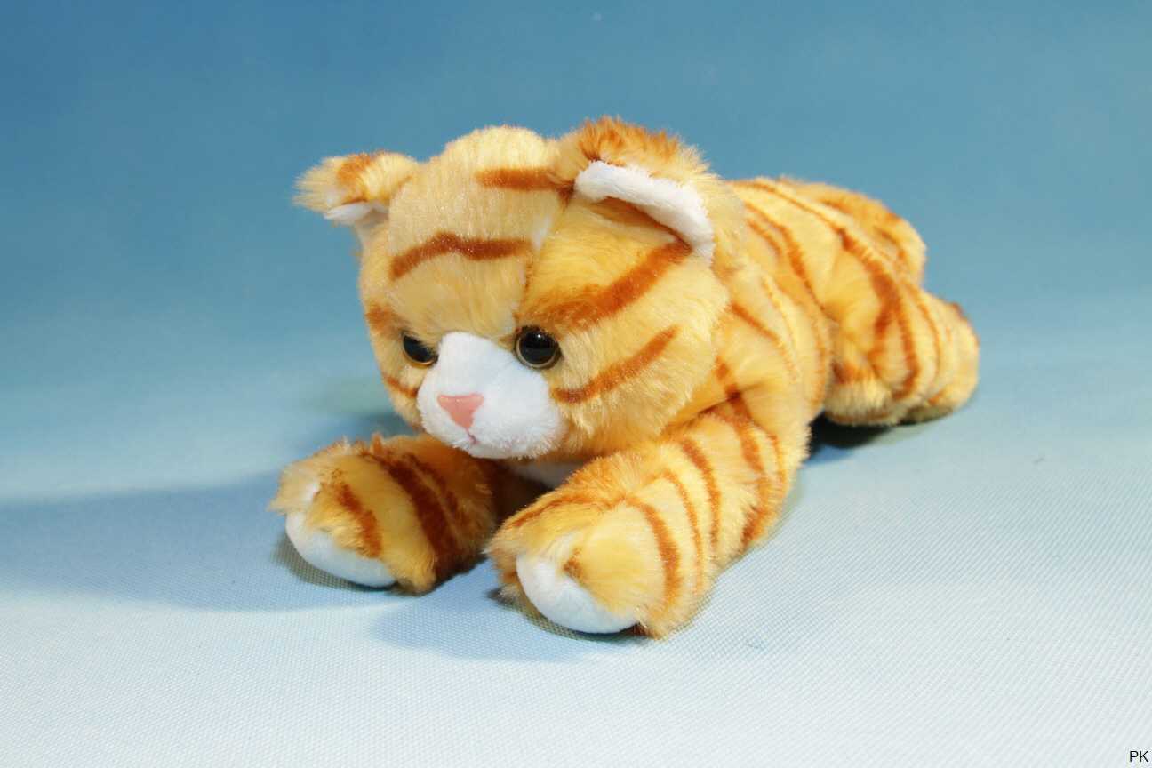 Plüschtier Tigerkatze in liegender Position.