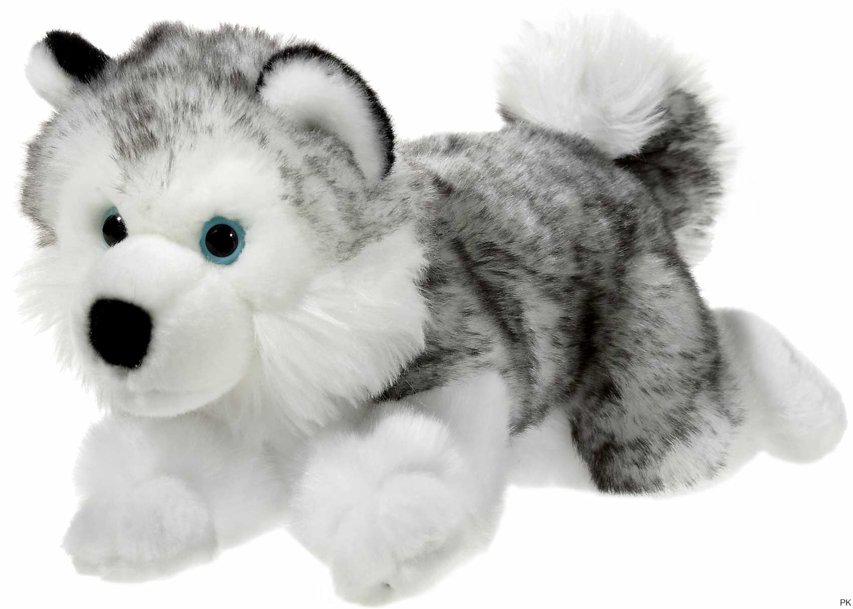 Das Stofftier Husky hat große, ausdrucksstarke blaue Augen.