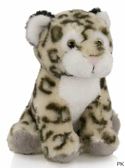 Das Plueschtier Schneeleopard ist aus kuscheligem, kurzflorigem Material hergestellt und superweich gefüllt.