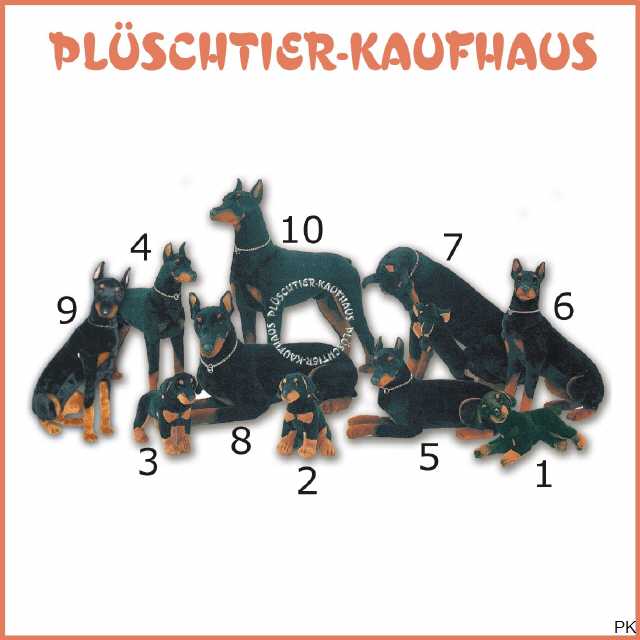 wie Plüschtier Dachs, Plüschtier Dackel (Plüschtier Rauhaardackel), Plüschtier Dalmatiner, Plüschtier Dogge, Plüschtier Drache, Plüschtier Delphin, Plüschtier Dinosaurier, Plüschtier Dodo, Plüschtier Dobermann, Plüschtier Dromedar.