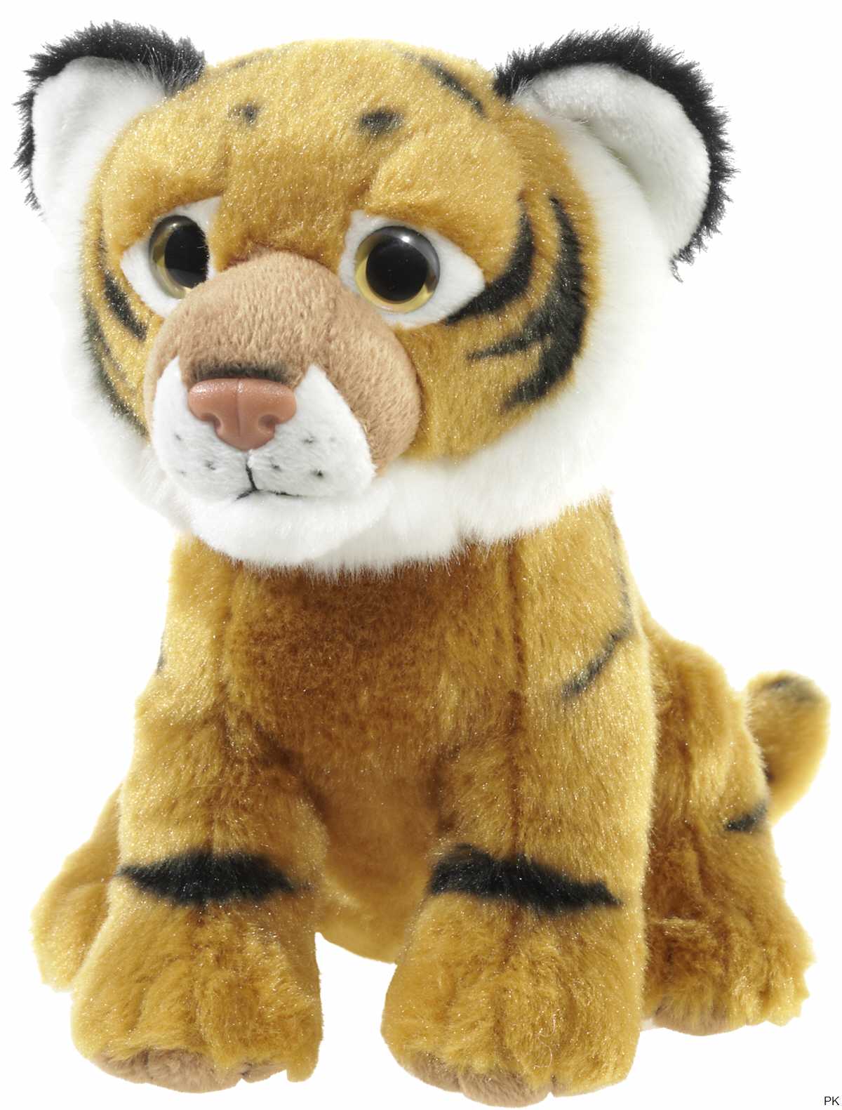Das Stofftier Tiger hat große, ausdrucksstarke Augen.