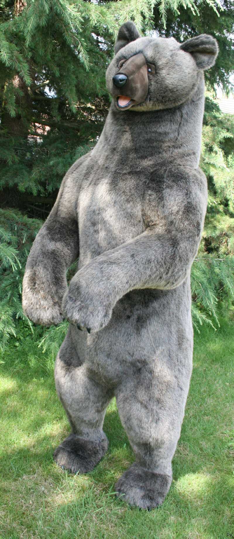 Plüsch Grizzlybär mit gräulichem Oberfell, in stehender Position.