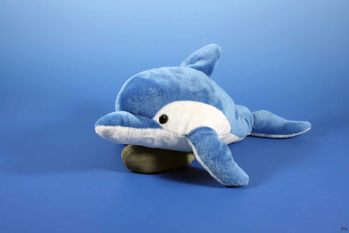 Plüschtier Delphin in liegender Position.