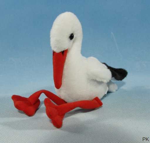 Plüschstorch, schlenkernd mit schwarzem Knopfauge.