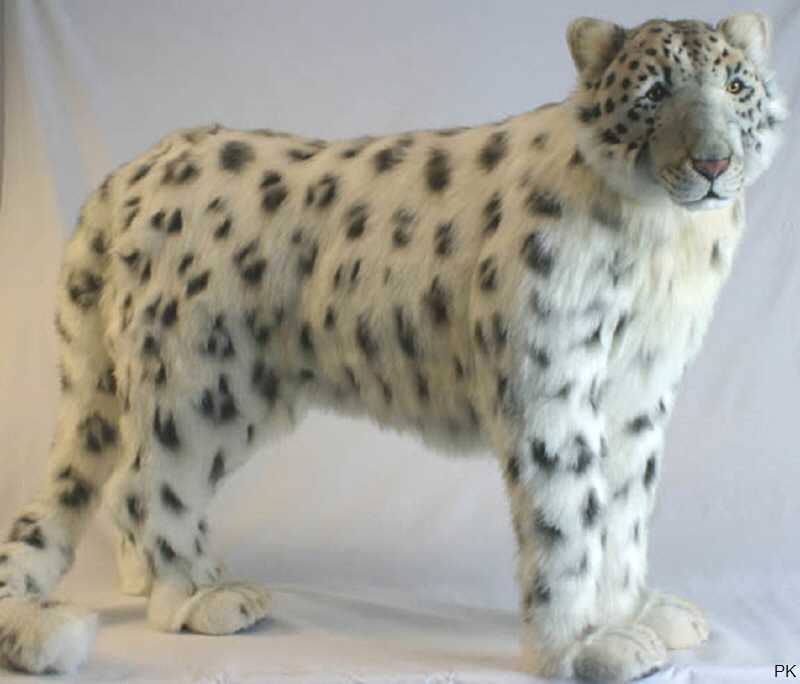 Die großen Pfoten des Stoff Schneeleopards sind schneeschuhartig ausgebildet.