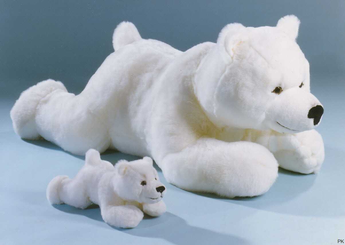 Kleiner liegender Eisbär (45 cm groß) oder großer liegender Studiotier-Eisbär (140 cm groß).